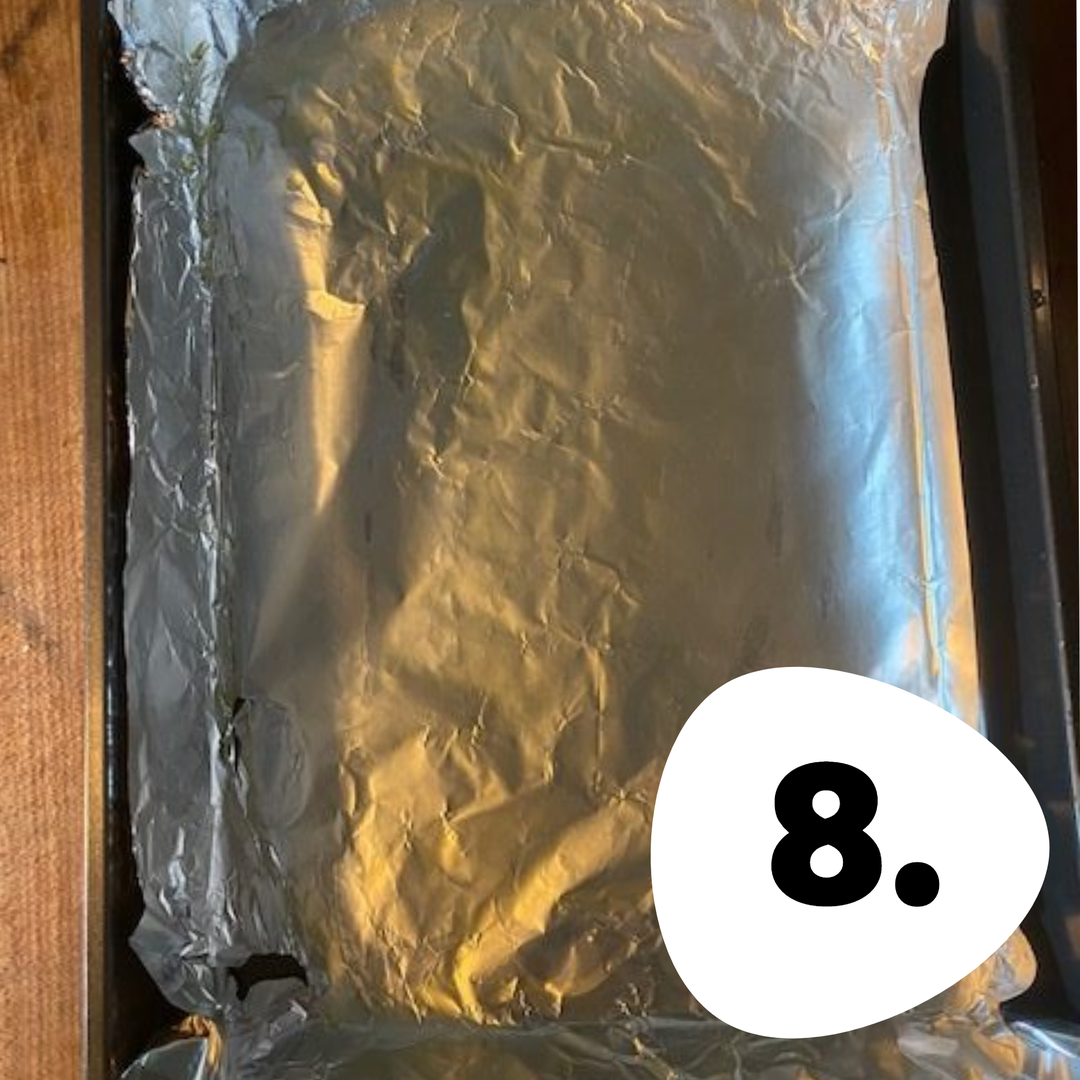 5. Line a 9x13 baking dish with tin foil, and then spray it down with non-stick cooking spray.