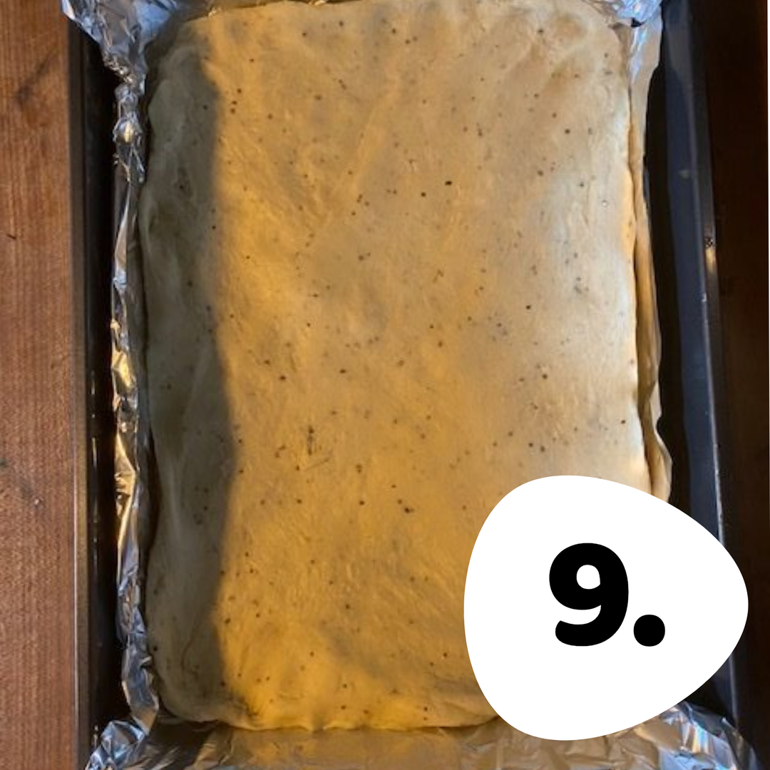 7. While your oven is preheating, lightly press the dough into the prepared baking dish and cover to let rise for 10-15 minutes.