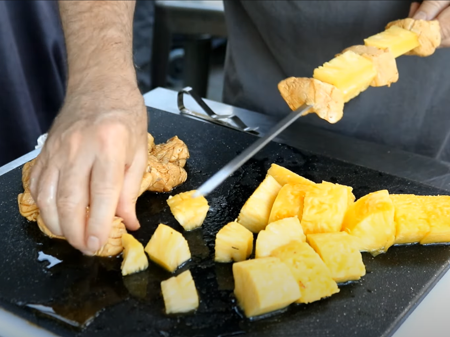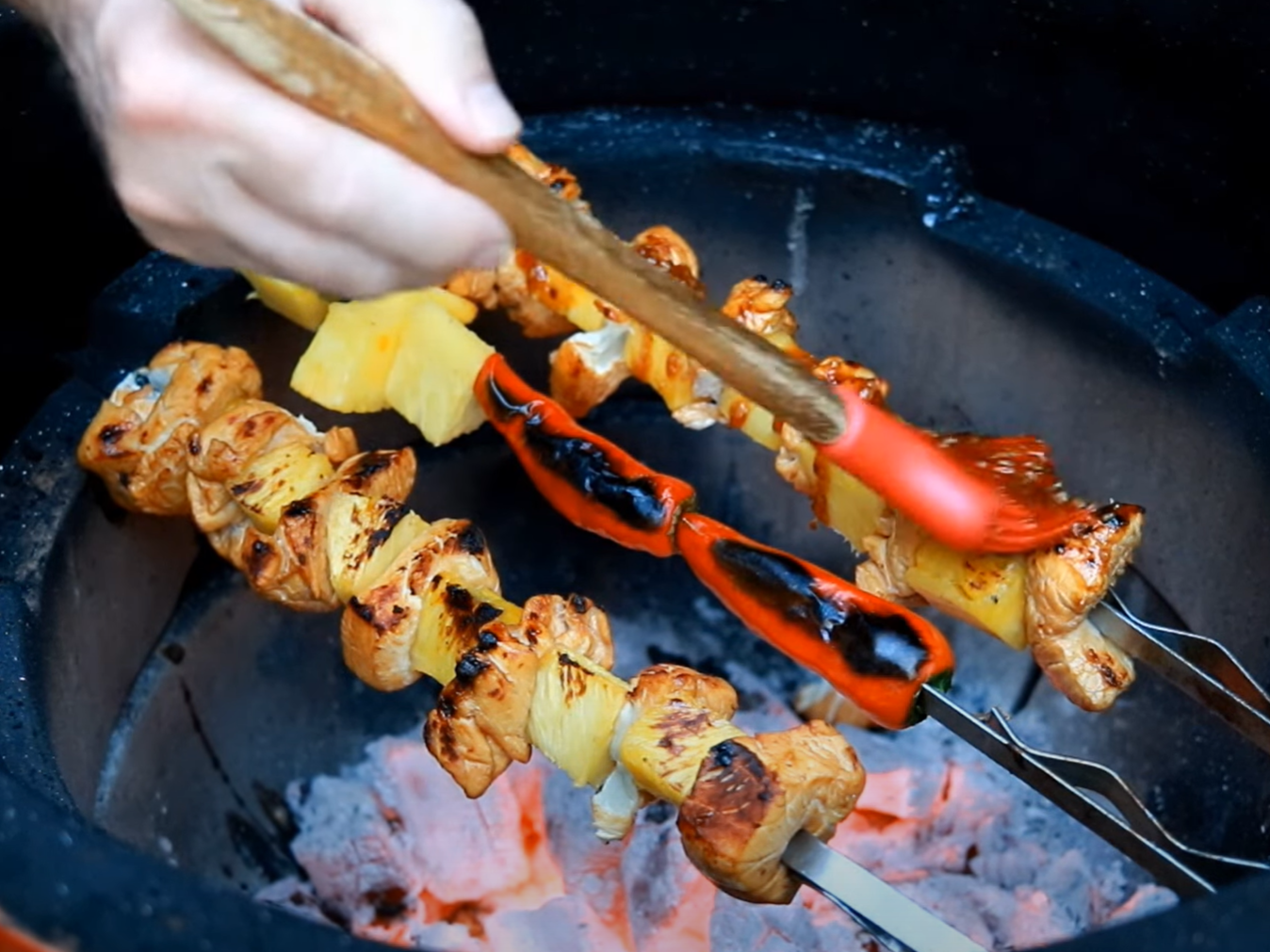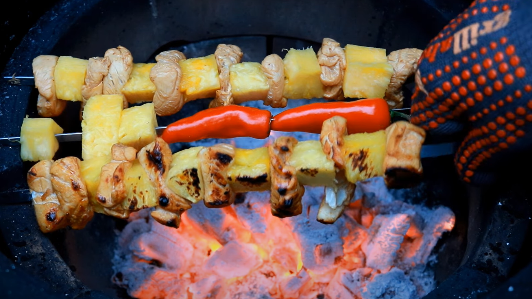 [Get your own pair of Grillaholics Grill Gloves to easily maneuver your skewers.]