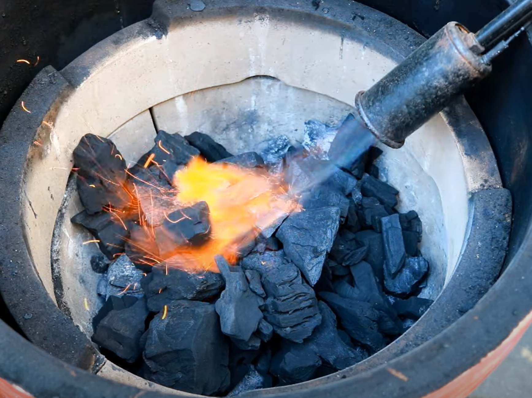 Use some lump charcoal today. Fire this bad boy up, and I chose the Kamado because it'll hold the heat very well. This cold weather we're having in Florida.