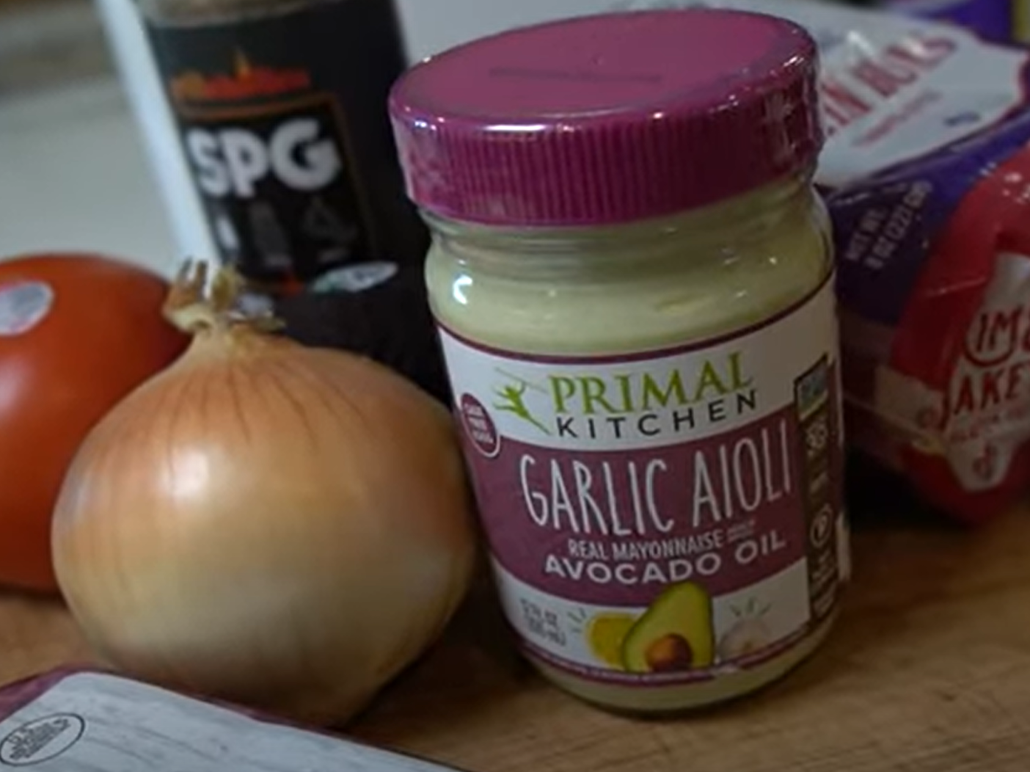 And what would a good burger be without some mayo and ketchup. Well we got this avocado oil based mayo here. "Garlic Aioli" again completely organic, healthy for you, no sugar, and then, we got some unsweetened ketchup...