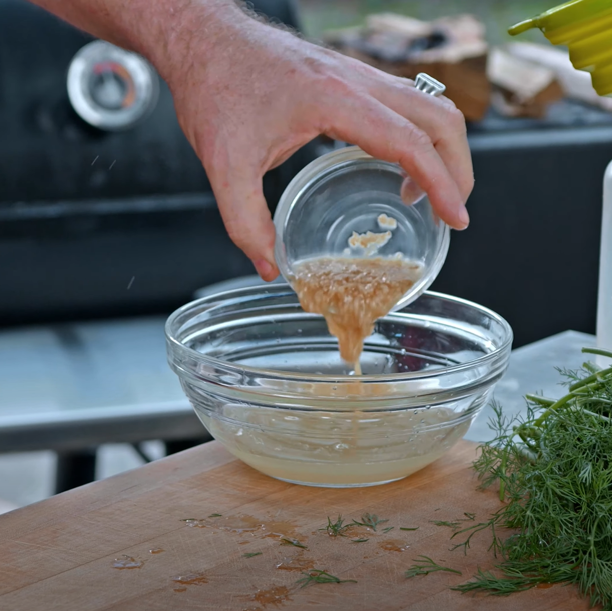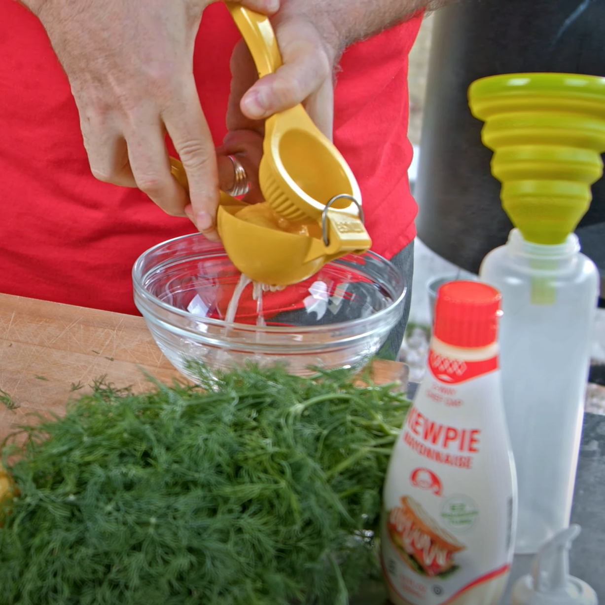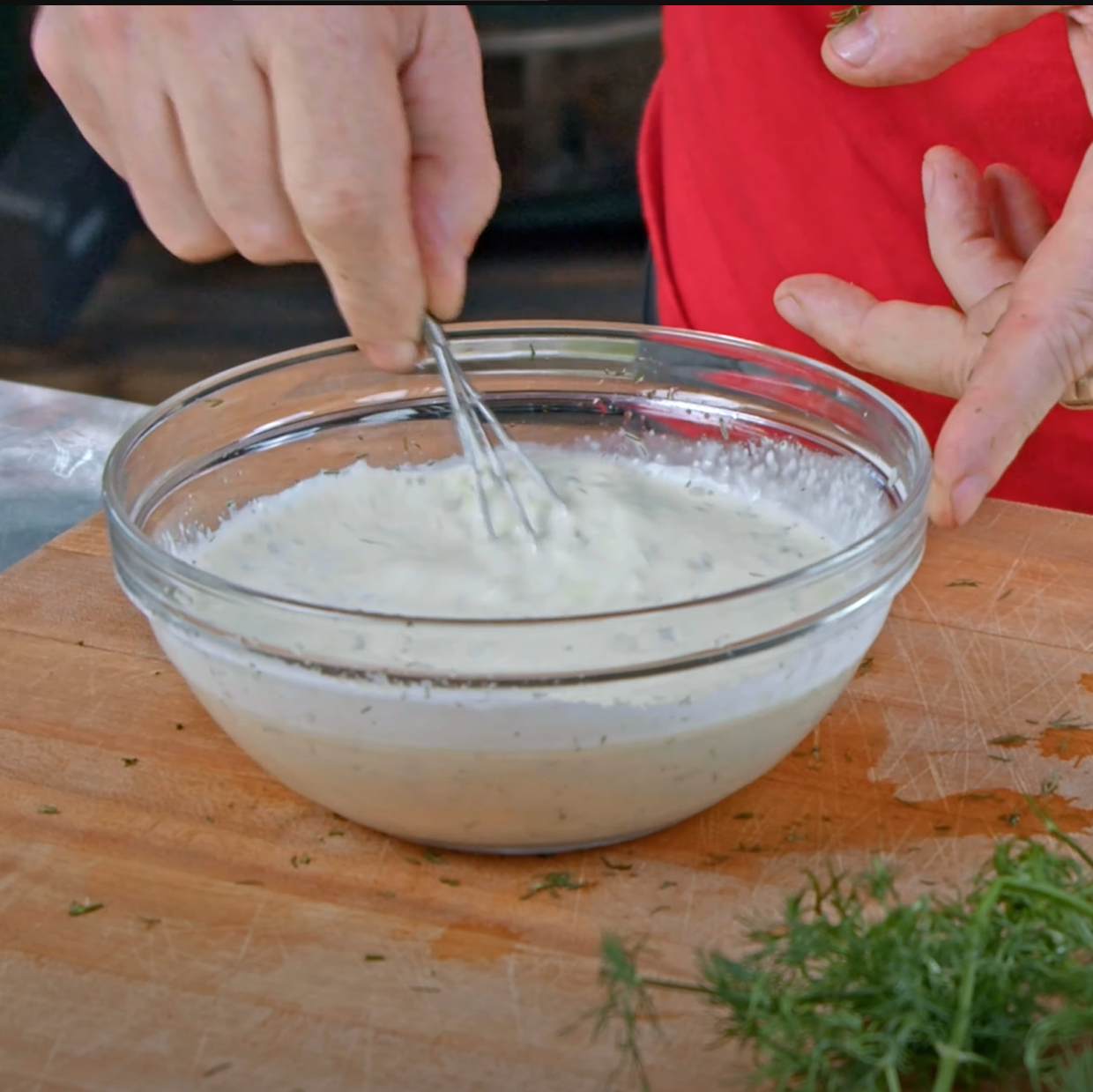 While they smoke, let's throw together a little dill aioli to amp up our salmon when it's time to taste.