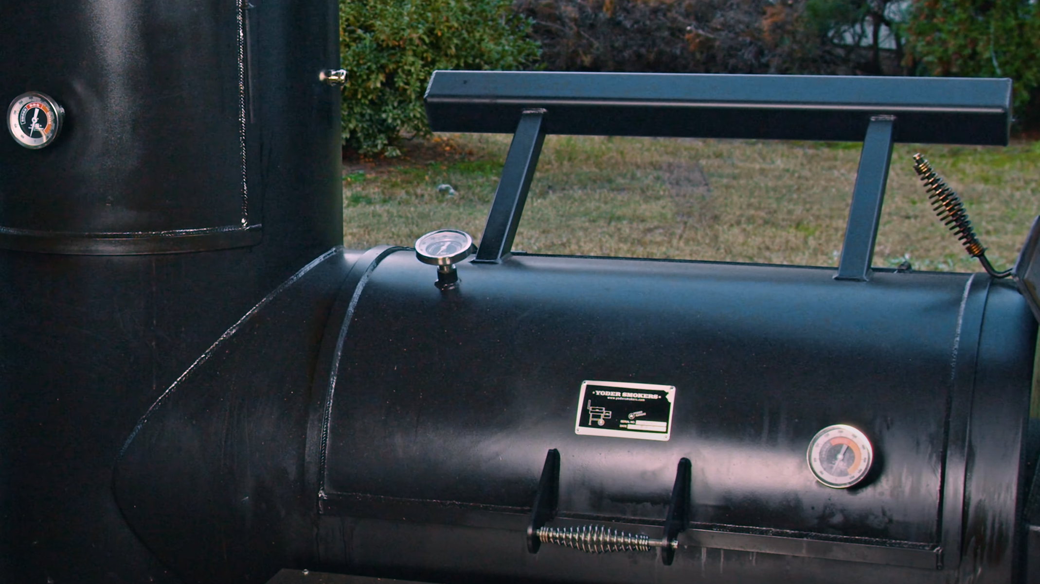 Welcome to the backyard. This is Boba Fett. He's a Yoder Durango offset smoker with a horizontal main chamber and this vertical stack chamber.