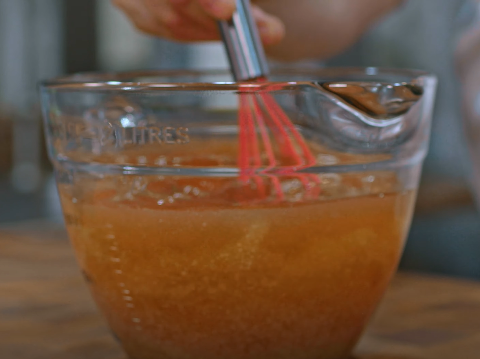 Mix all those ingredients together. The salt and sugar will dissolve just fine, and of course, the maple syrup already has.