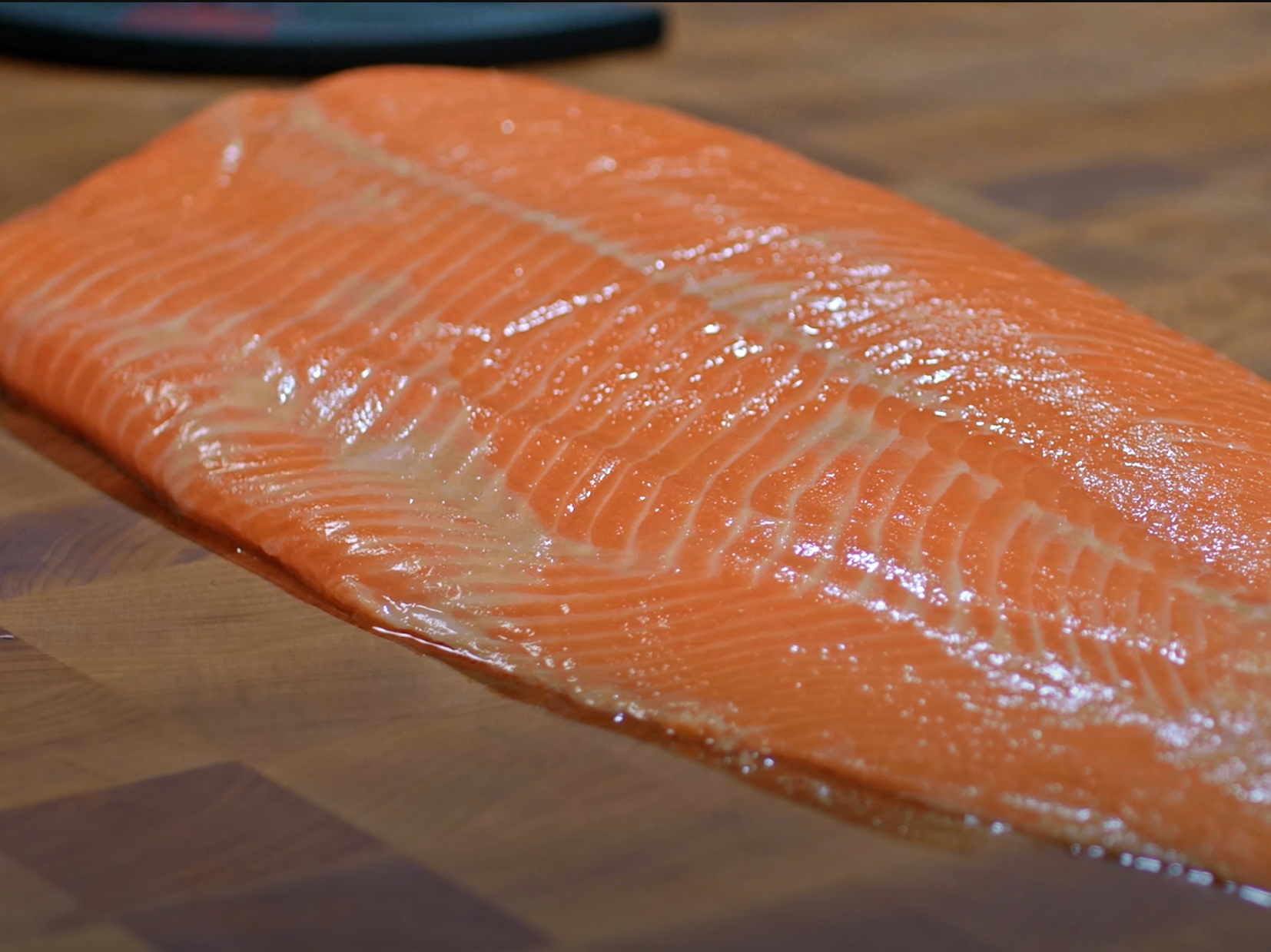 This is ora king salmon from New Zealand and it is gonna be the best tasting and best looking king salmon that you can get worldwide.
