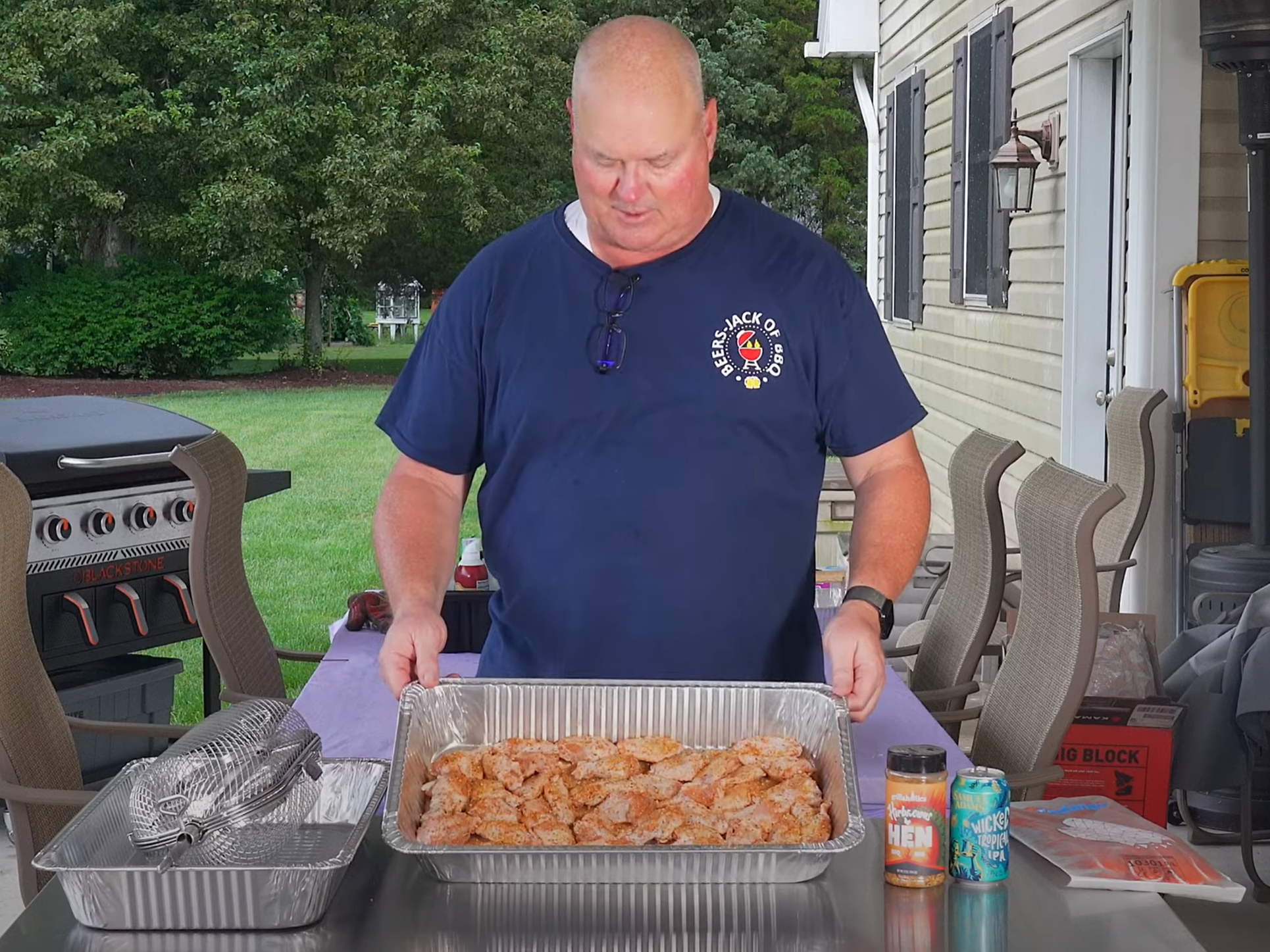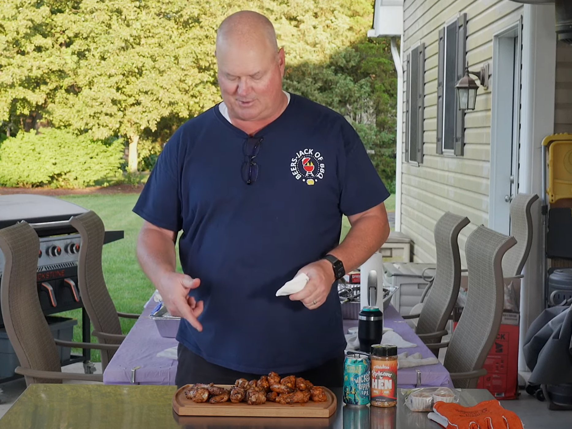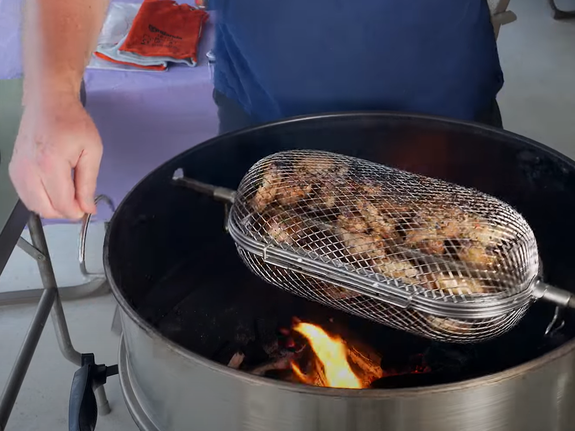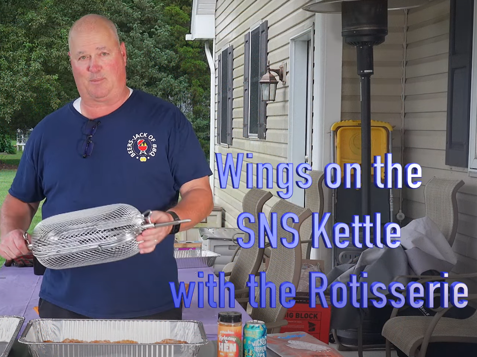 Hey, welcome to Beers-Jack of BBQ. Check out the chicken wings we did on the SnS kettle with the rotisserie ring.