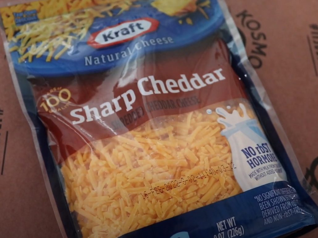 Next, we're just going to add our two cups of cheese right on top like so, and then, the last step before we add some of our seasoning is the cup of baking mixture...