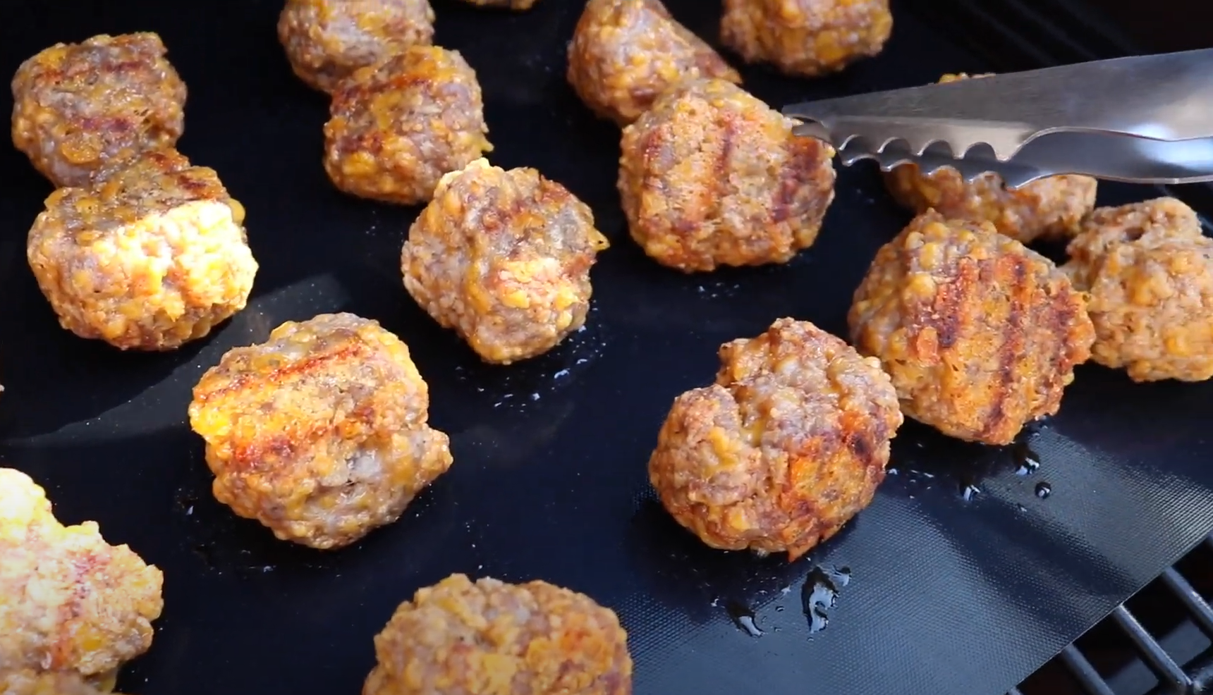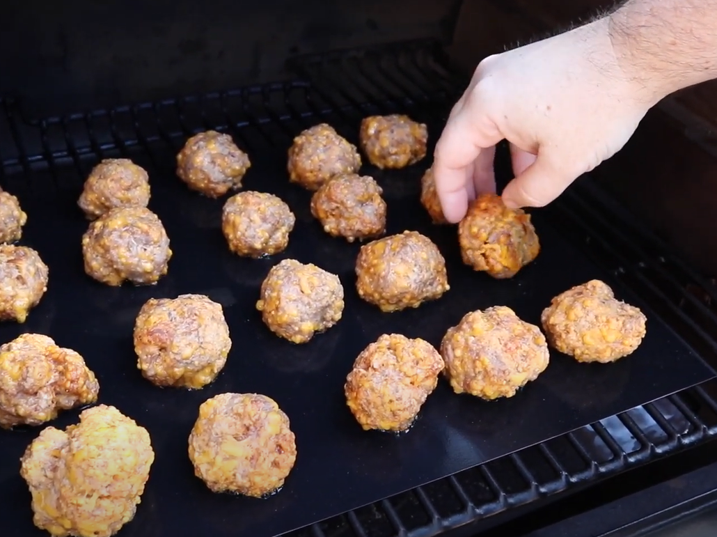 Smoked Sausage and Cheese Balls with a Grill Mat on the Traeger Ironwood 650