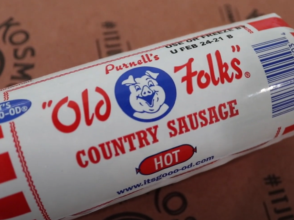 First thing we have is a cup of our baking mix, which you can use Bisquick or whatever. Next, we have two cups of shredded cheese. You can shred it yourself or you can buy it at the store like I did here. Then, you need some hot country sausage just like this. this is Purnell's “Old Folks”... Country Sausage. It is really good, and we're gonna be using that one log is 16 ounces. And then to add a little more flavor, to kick it up a notch, whatever you want to say, we're gonna throw on some Honey Killer Bee rub, and we're gonna be using this bowl to put it all together.