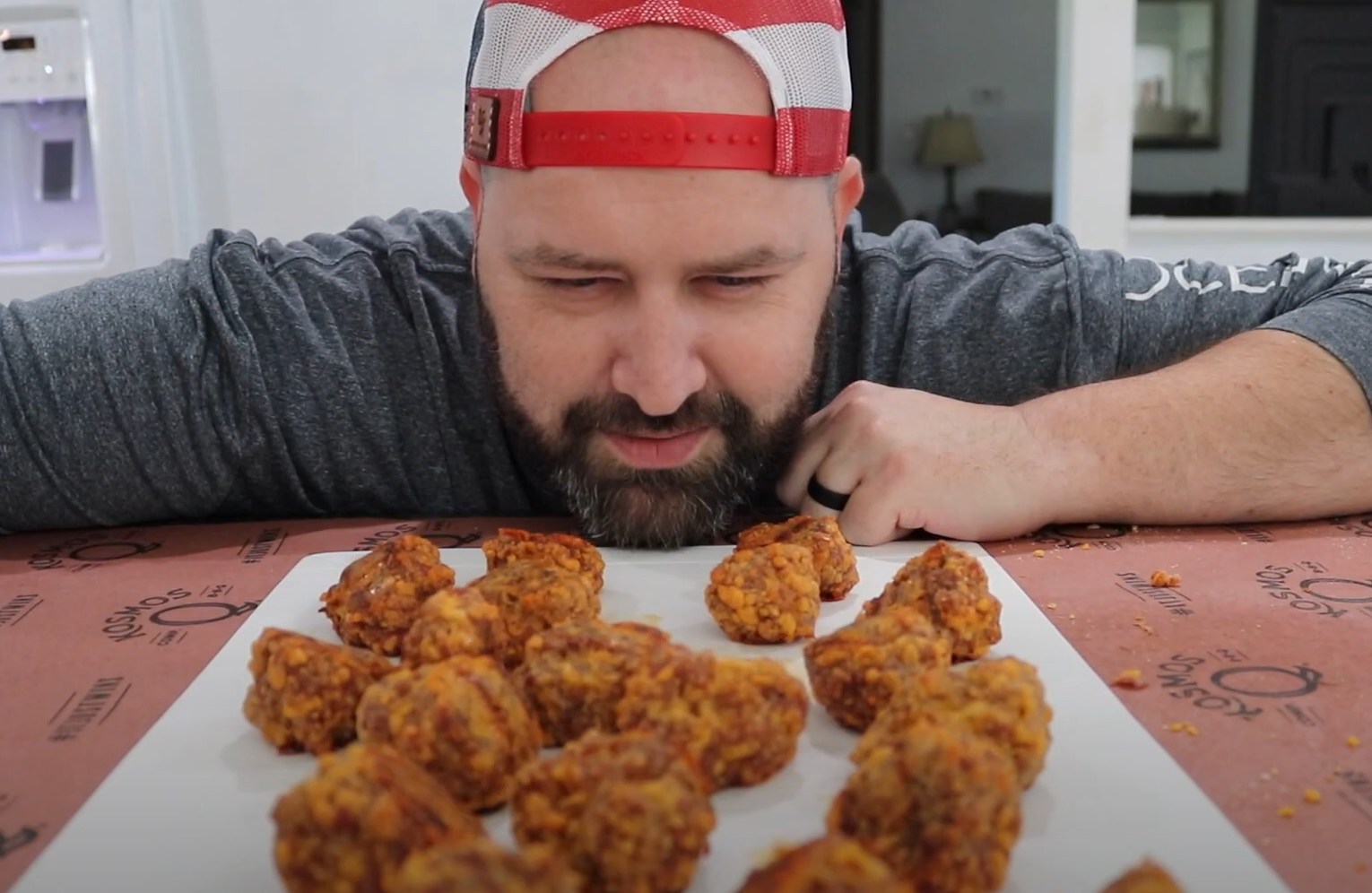 So while this is coming up to temperature, we're gonna head inside and make some really big, beautiful sausage and cheese balls.