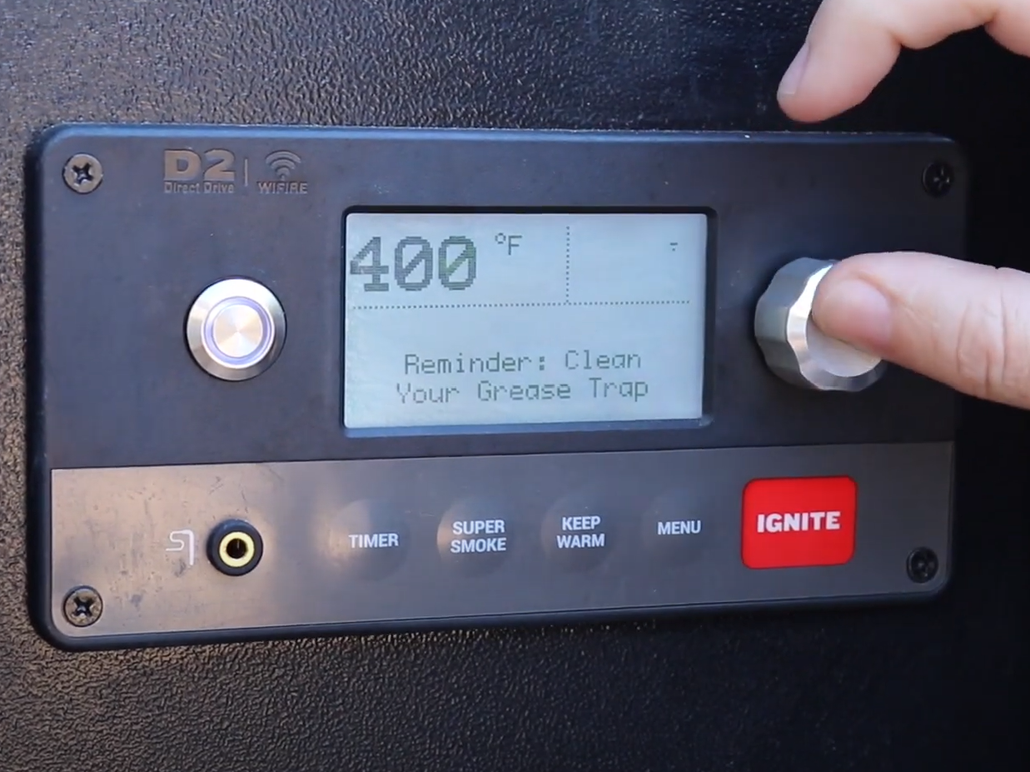 Before we go inside, we're gonna fire this thing up. We're gonna turn it on and as soon as that Traeger logo comes down, we're gonna fire this up to 400 degrees... and then we hit ignite.