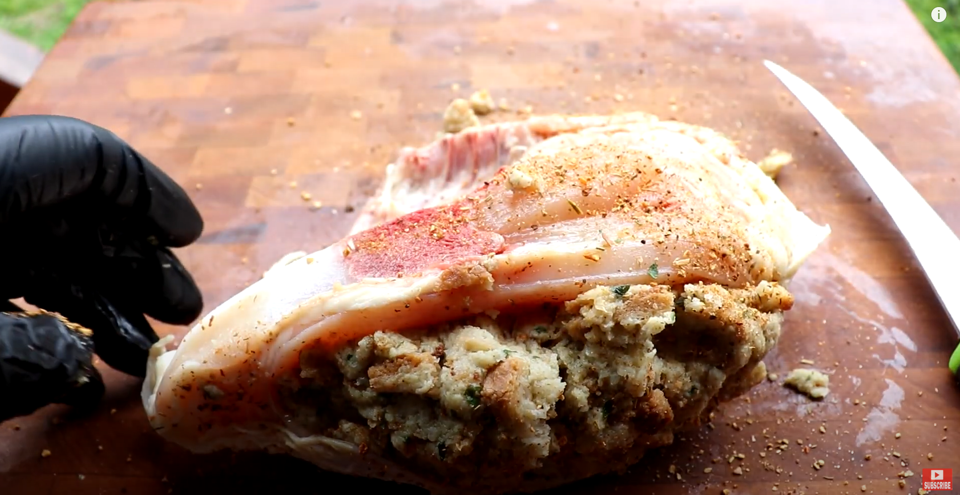 Kory was so excited to give it a shot that the rain did not hold him back from grilling! Check out how he whipped up some mouth watering stuffed chicken breasts with our Herbacious Hen seasoning.
