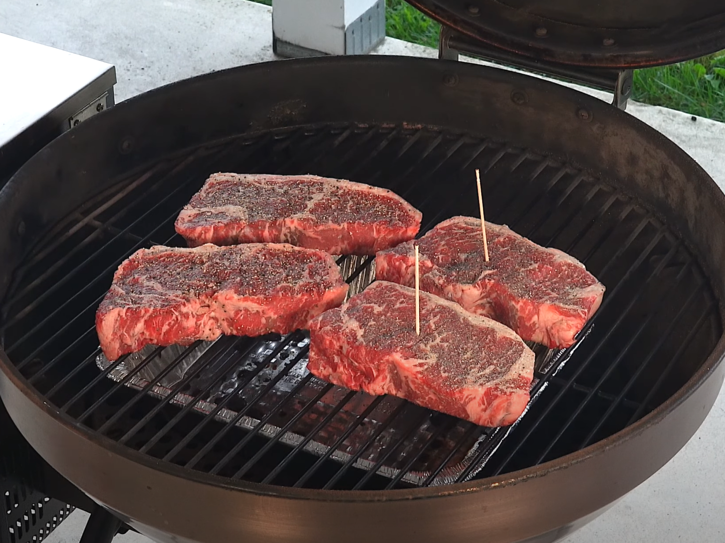 Did about 10, 12 steaks for Father's Day and did the same process with two different grills. One at a high heat. One at a low just to get things moving. So sharing my secrets…