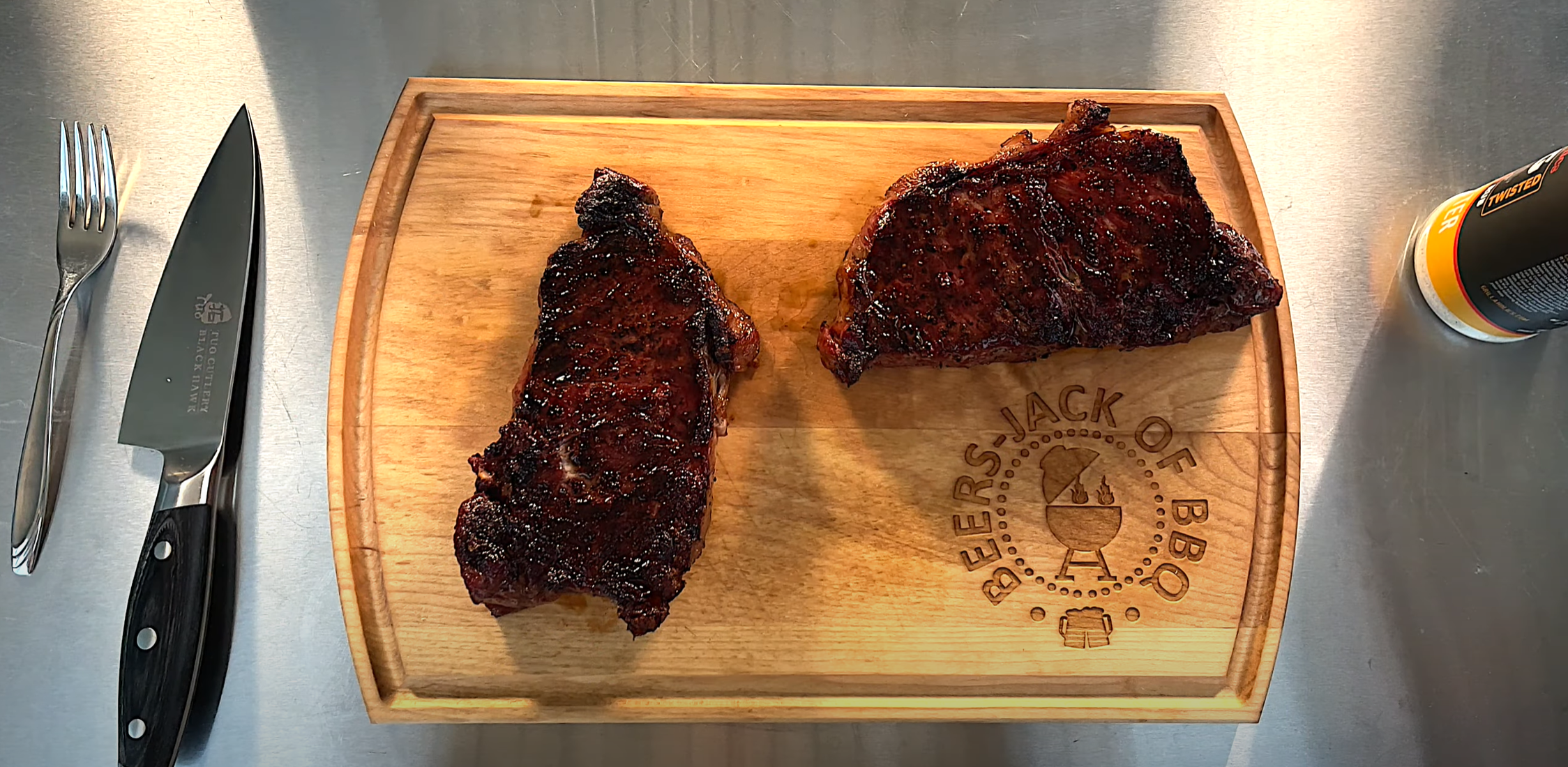 Hey welcome to an episode of Beers-Jack of BBQ. Check out the new rubs from Grillaholics we used on these prime new york strips tonight...