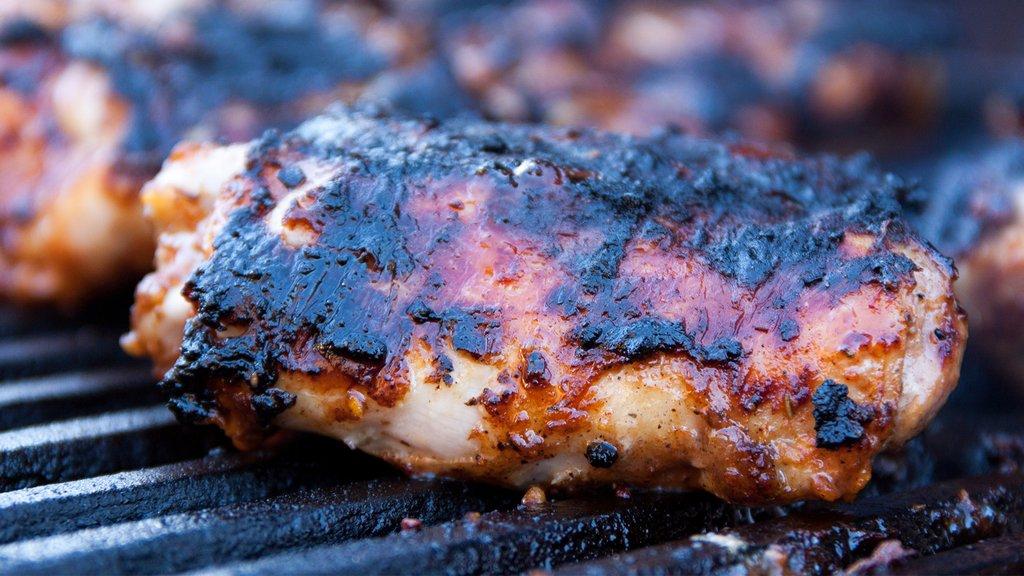 Rather than searing nicely like steak, chicken burns, ruining the taste completely. It will also cause the outside of your chicken to cook more quickly than the inside, leaving you with unevenly cooked chicken.